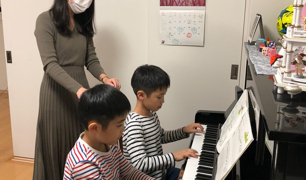 先生が家に来てくださり、兄弟を順番にレッスンしていただけるので、お教室へ移動したり、兄弟のレッスンが終わるのを待っていたりする時間がないのが、一番助かります。
